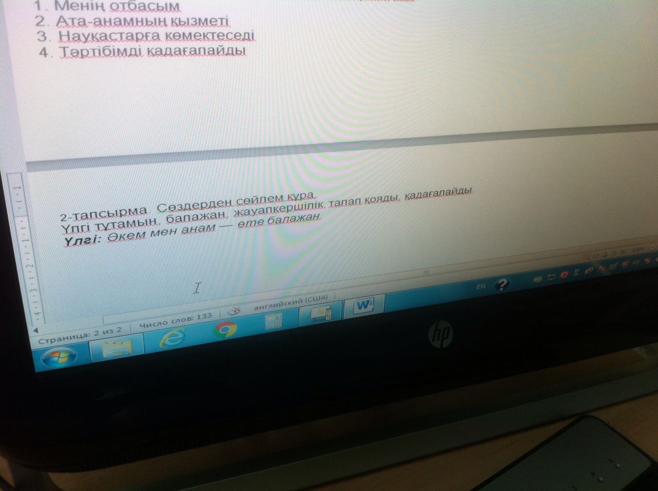 Мен өз ұстазымнан үлгі тұтамын.Менің анам балажан.Әр адамда жауапкершілік болу керек.Әкем менің сабағымды кадағалайды.