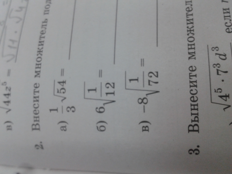 а)1/3√54=√(1/9*54)=√6