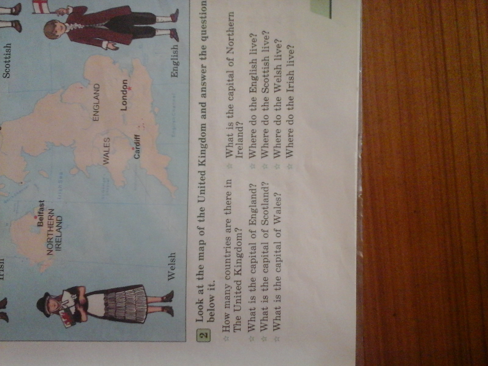 Перевод:Посмотрите на карту Соединенного Королевства и ответить на вопросы ниже него.