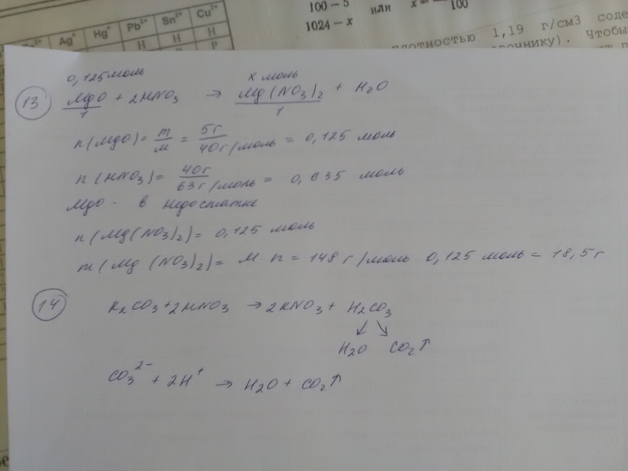 13.Рассчитайте массу нитрата магния, образующегося при взаимодействии 5г оксида магния с раствором, содержащим 40г азотной кислоты.