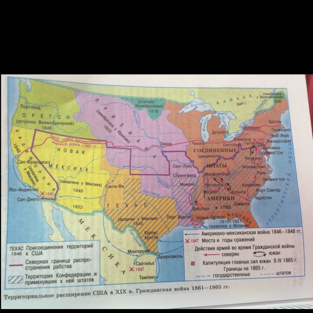 По карте "Территориальное расширение США в Х|Х в." определите, какие штаты выступали за сохранение рабства, а какие против.