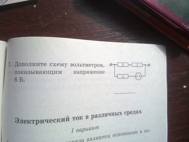дополните схему вольтметром, показывающим напряжение равное 6 В