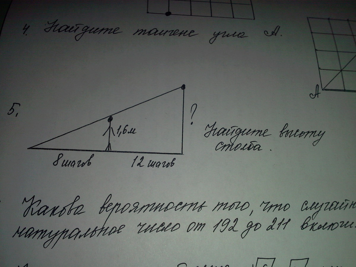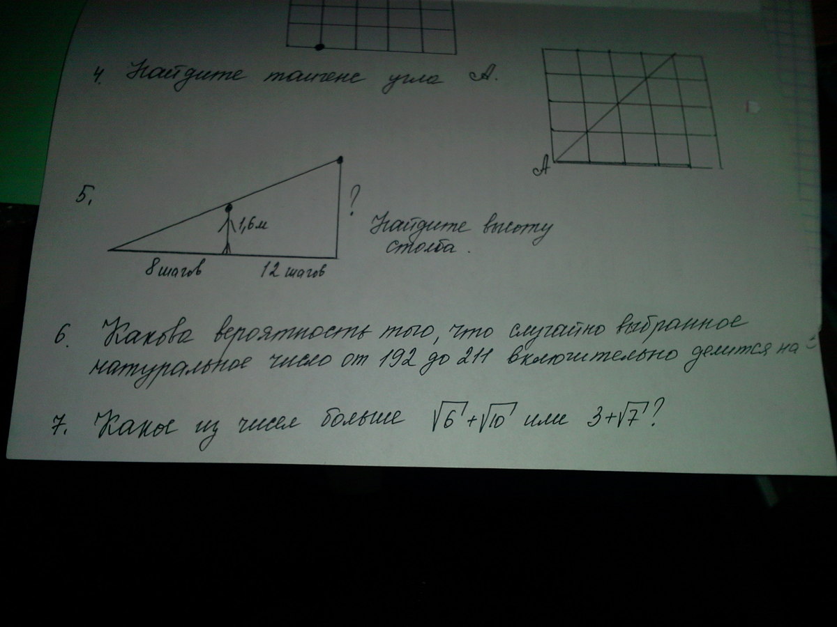 4. Тангенс - отношение противолежащего катета к прилежащему. Если сторона клетки равна 1 см, то тангенс= 4/4=1