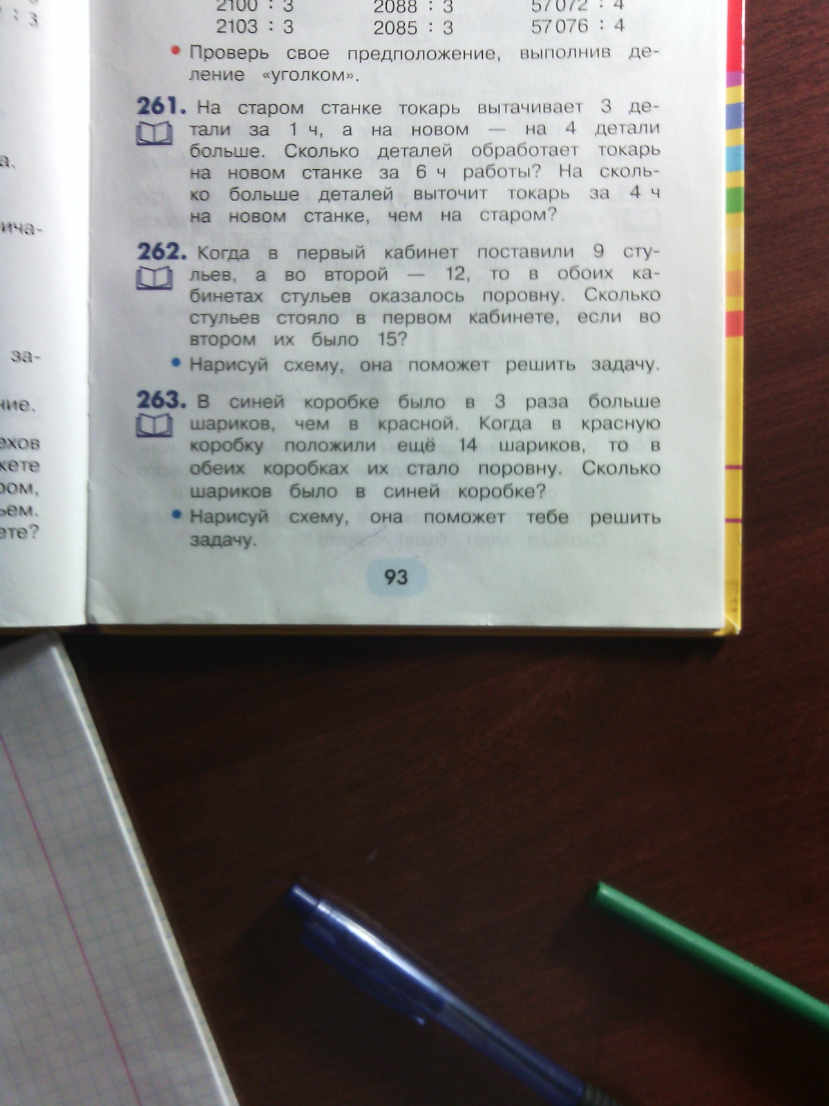 значит в красной коробке изначально лежало 7 шариков, в синей в три раза больше - 3×7=21, а в красную добавили 14 шариков - 7+14=21