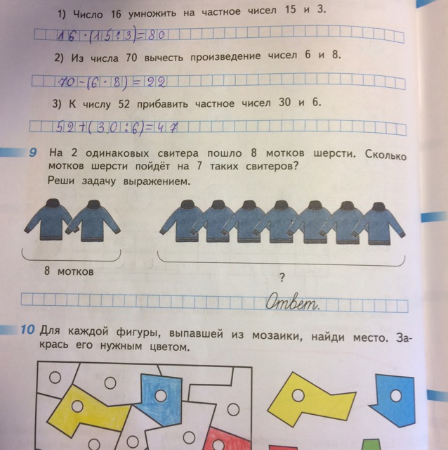 2)4×7=28(шт.) Мотков на 7 свитеров