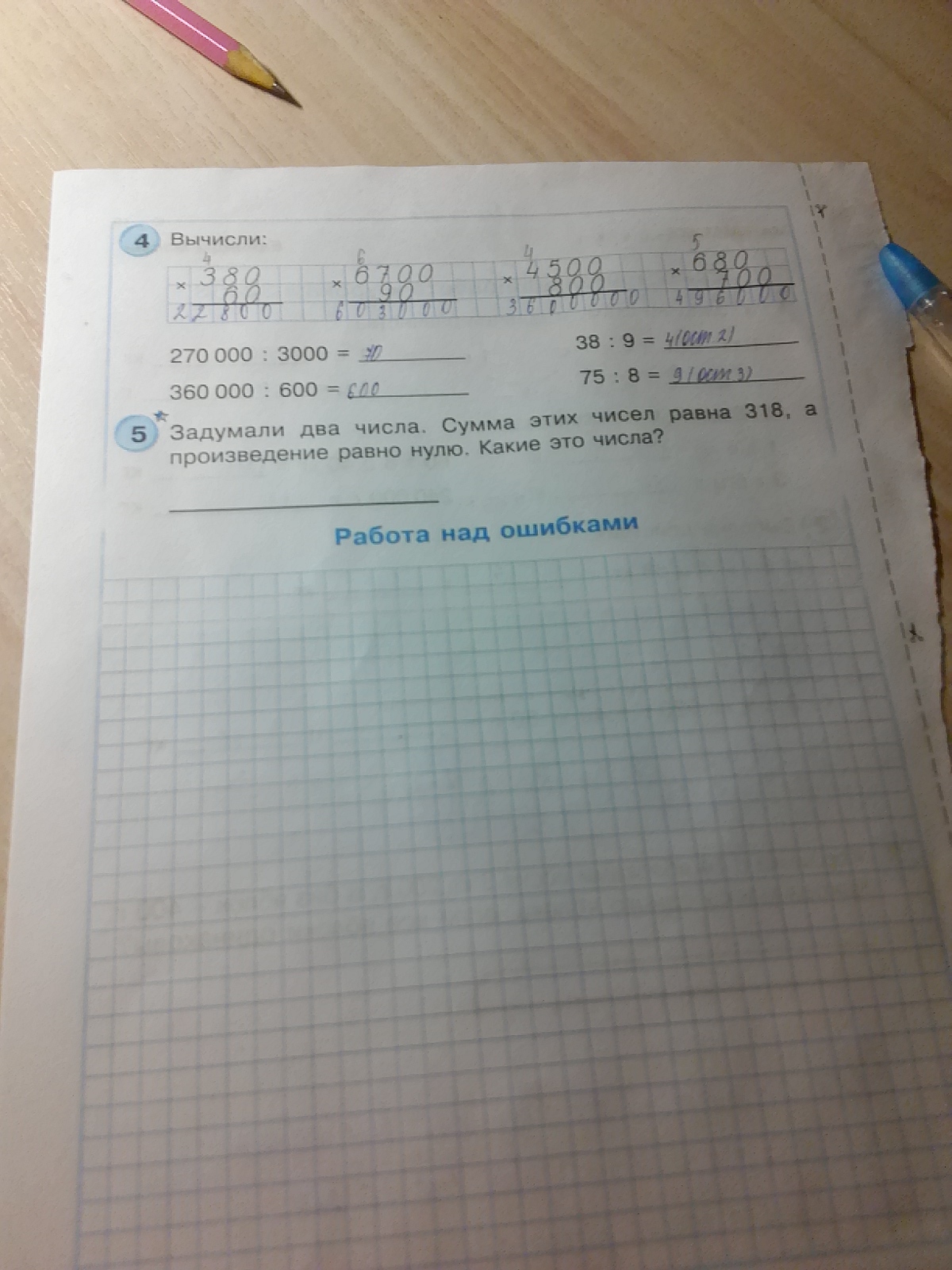 задумали 2 числа. Сумма этих чисел равна 318 а, произведение равно нулю. Какие это числа?