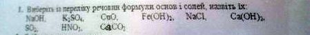 Вибрати з перелику речовини формули основ та солей та назвати Їх