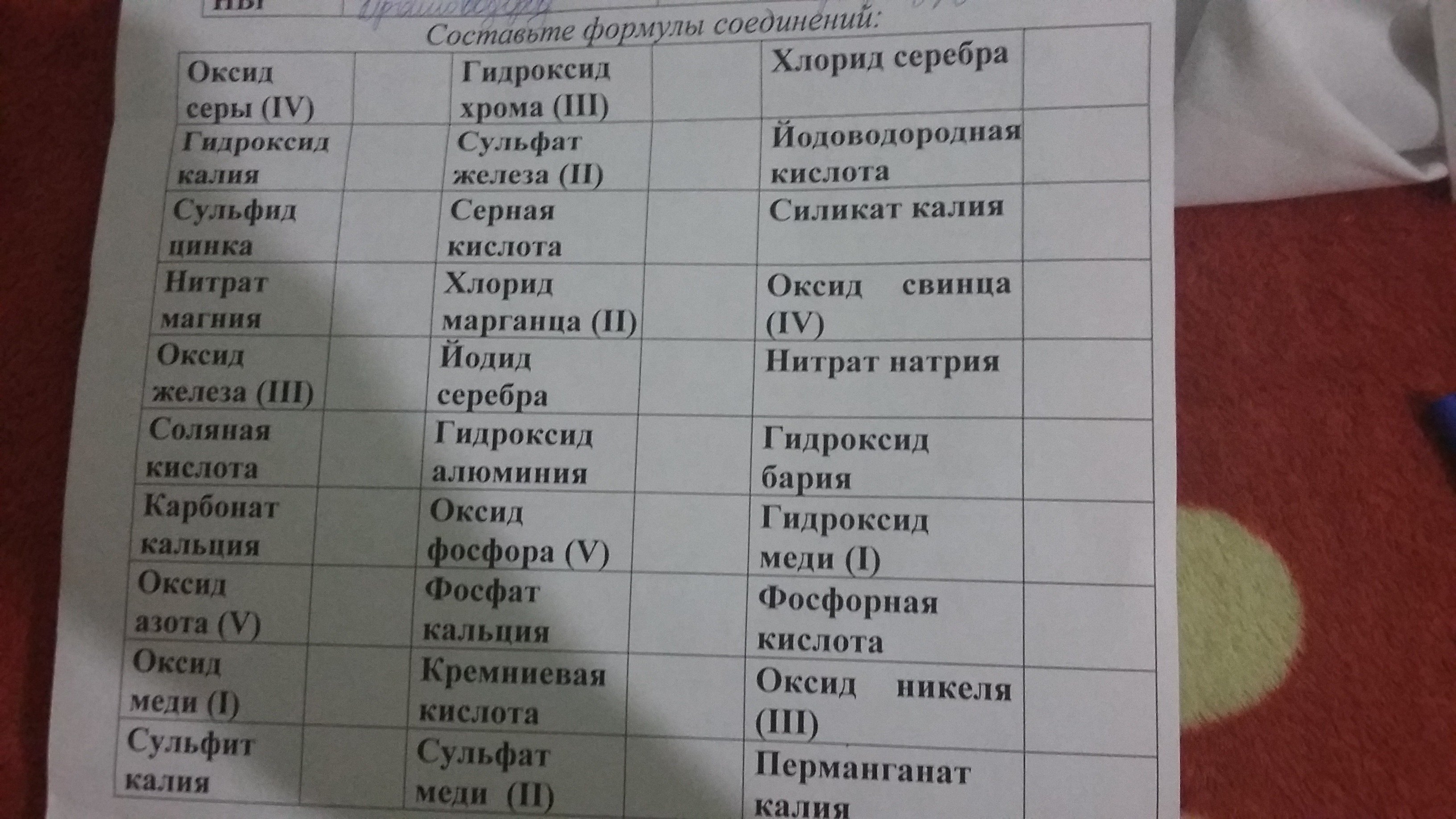 Cu2O; из кремниевых кислот известны: метакремниевая H2SiO3, ортокремниевая H4SiO4, дикремниевые H2Si2O5 и H10Si2O9, пирокремниевая H6Si2O7 и поликремниевые nSiO2•mH2O; Ni2O3