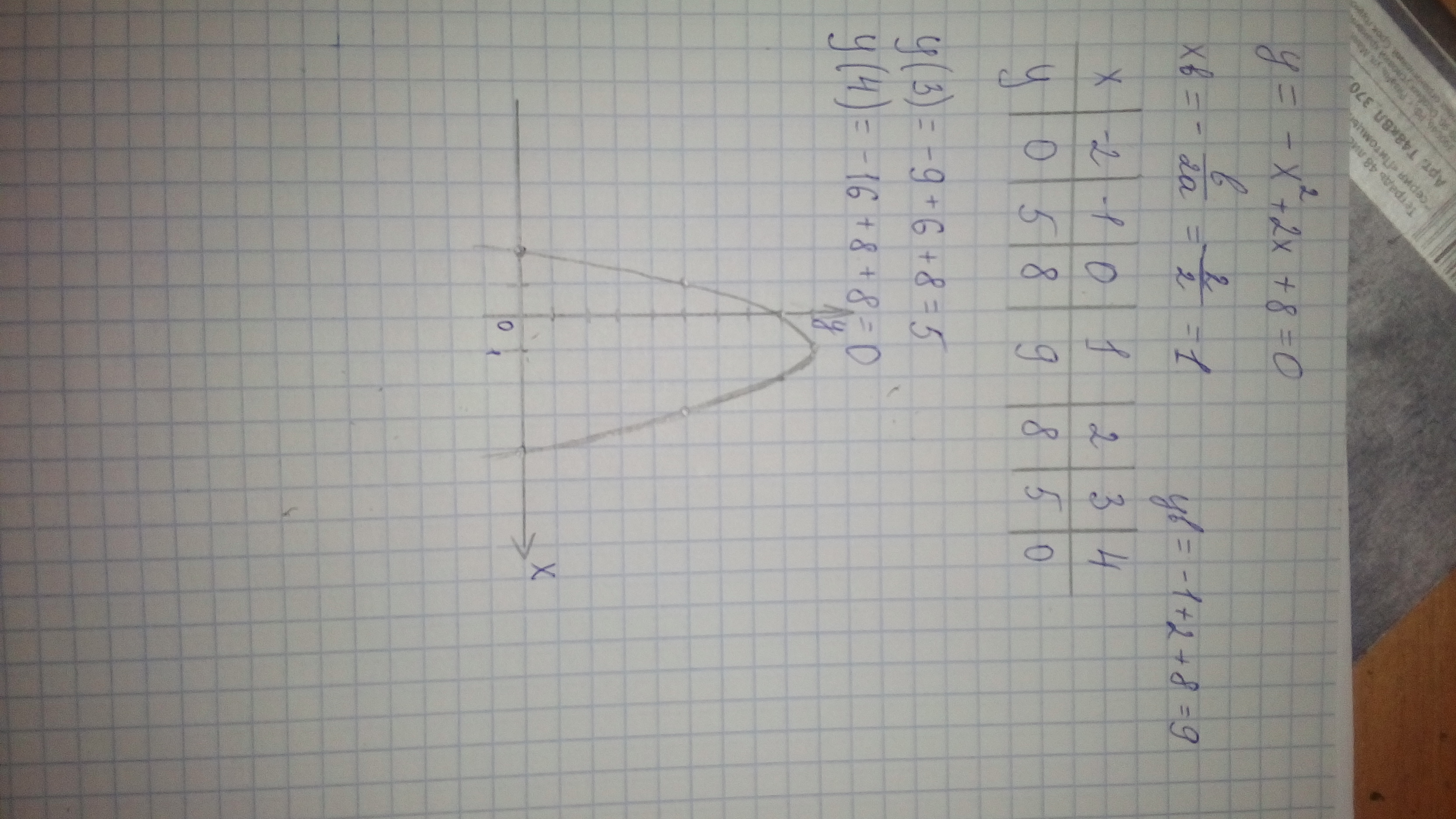 решите графически квадратное урaвнение -х^2+2x+8=0(с полным решением)