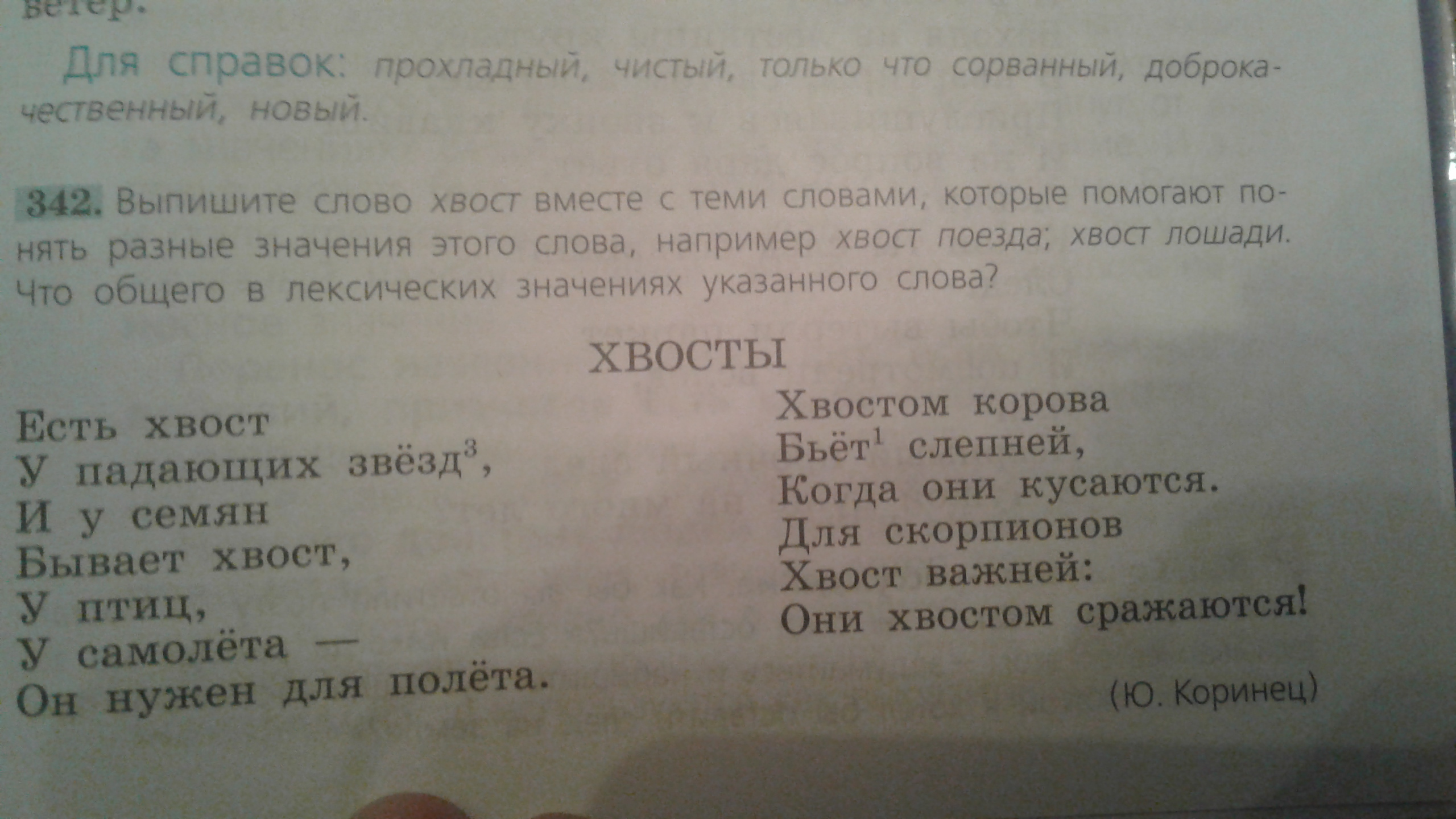 хвост звезды, хвост семян, хвост птиц, хвост самолёта, хвост коровы, хвост скорпиона.