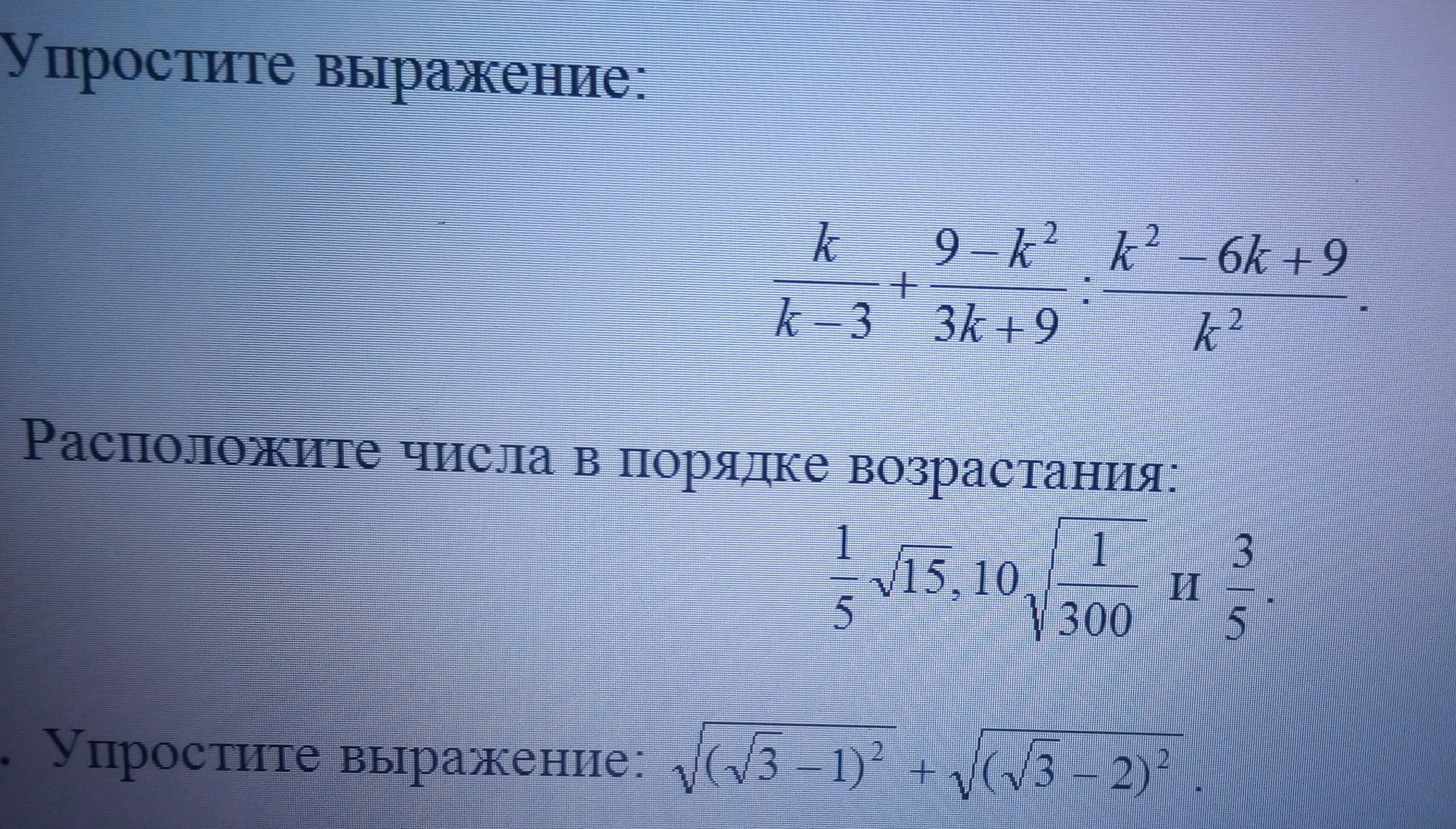 1.(3-k)(3+k)/3(3-k)*k^2/(3+k)^2=1/3k^2(3+k)