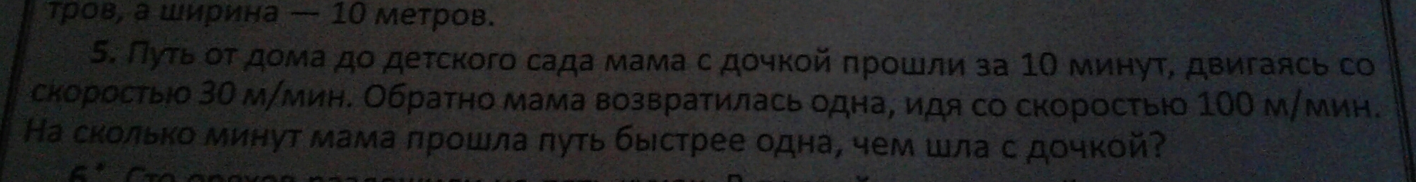 100-30=70 ( м/мин ) - мама прошла быстрее