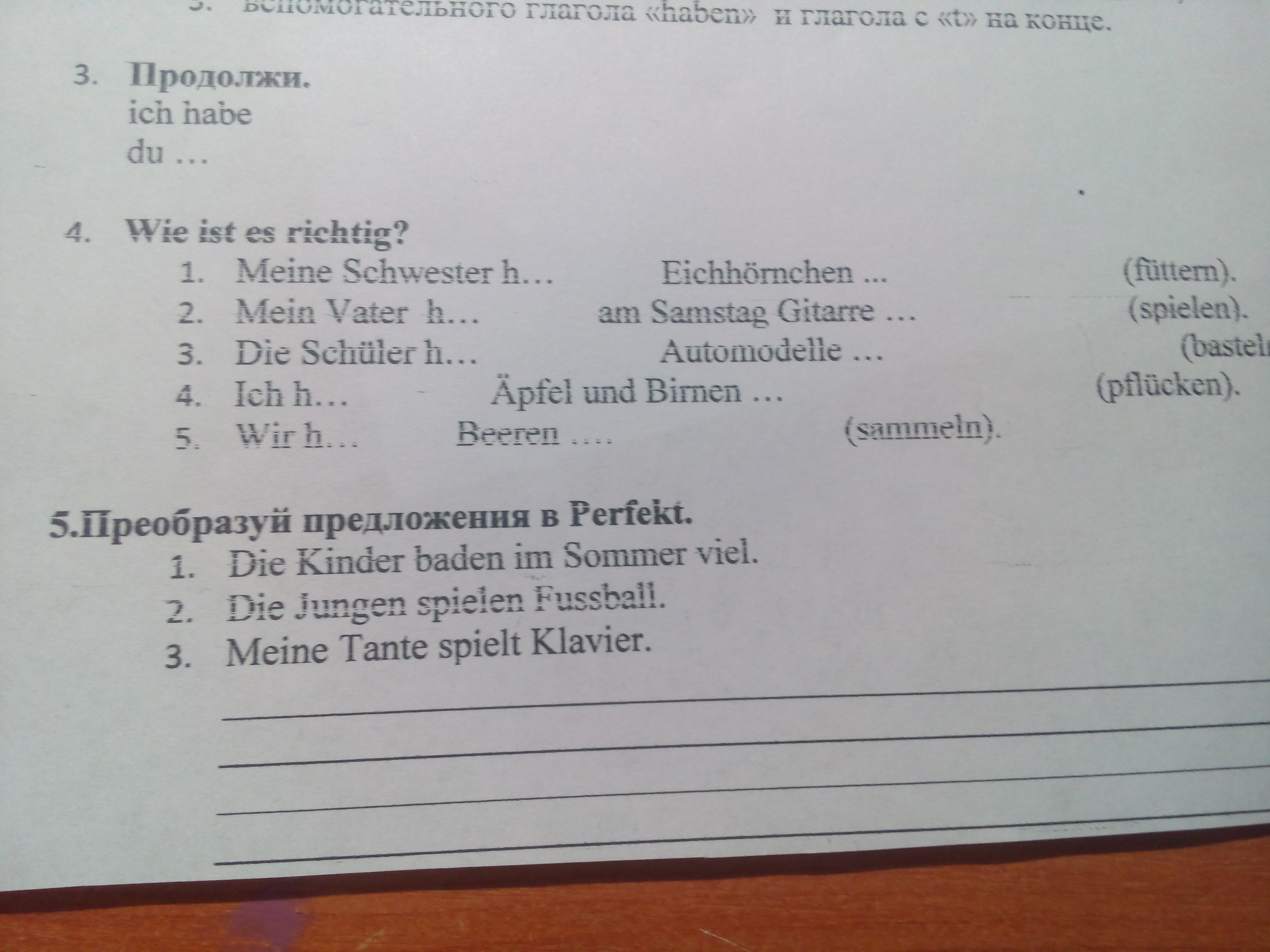 Помогите пожалуйста с немецким.Самостоятельная работа для 4 класса по теме "Perfekt" любой номер,но лучше все 3,4,5.