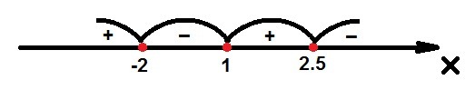 Ответ:x∈[−2;1]∪[2,5;+∞)или: −2≤x≤1;x≥2,5