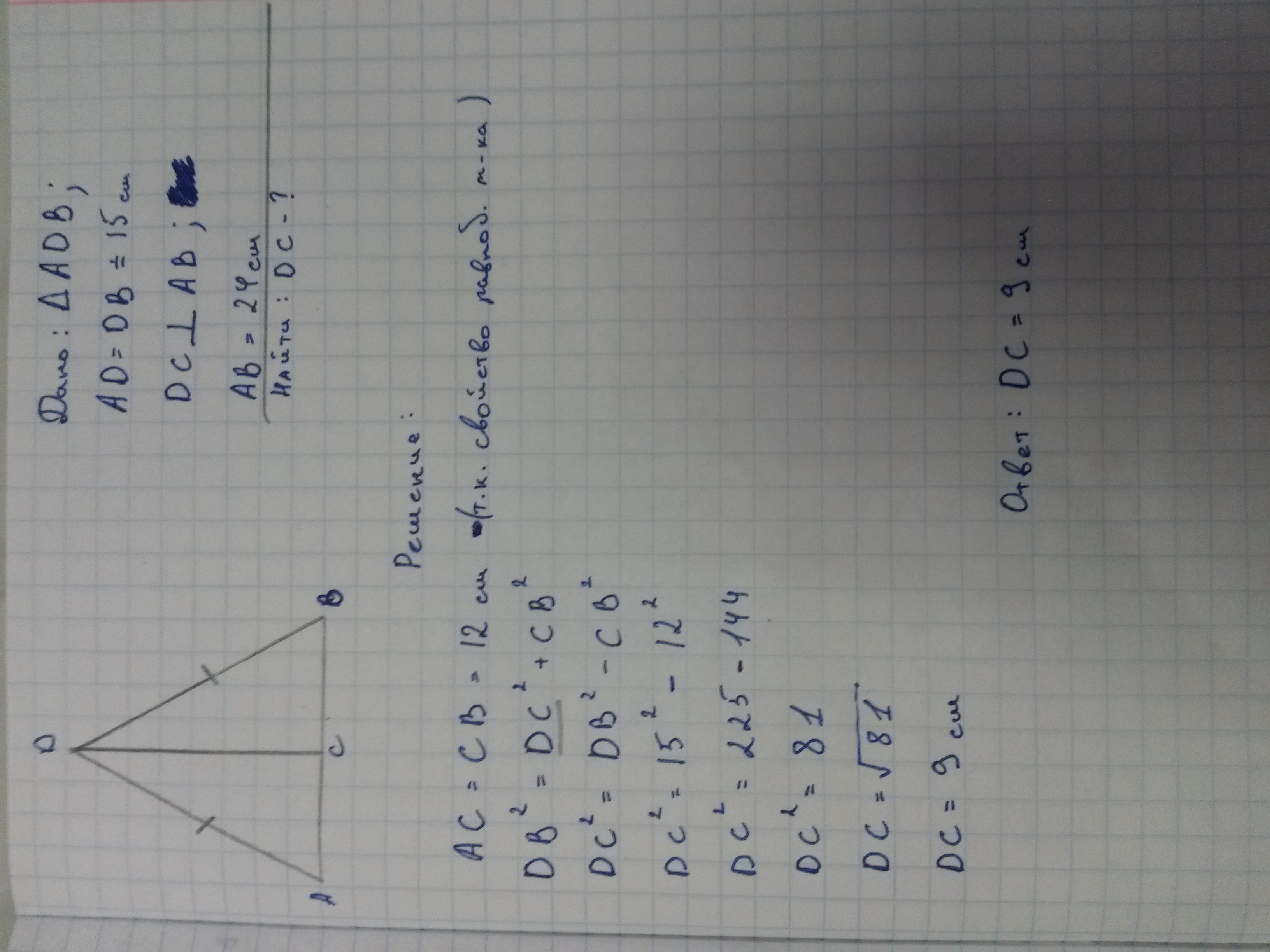 Найти высоту равнобедренного треугольника, проведенную к основанию, если стороны треугольника равны 24,15,15.