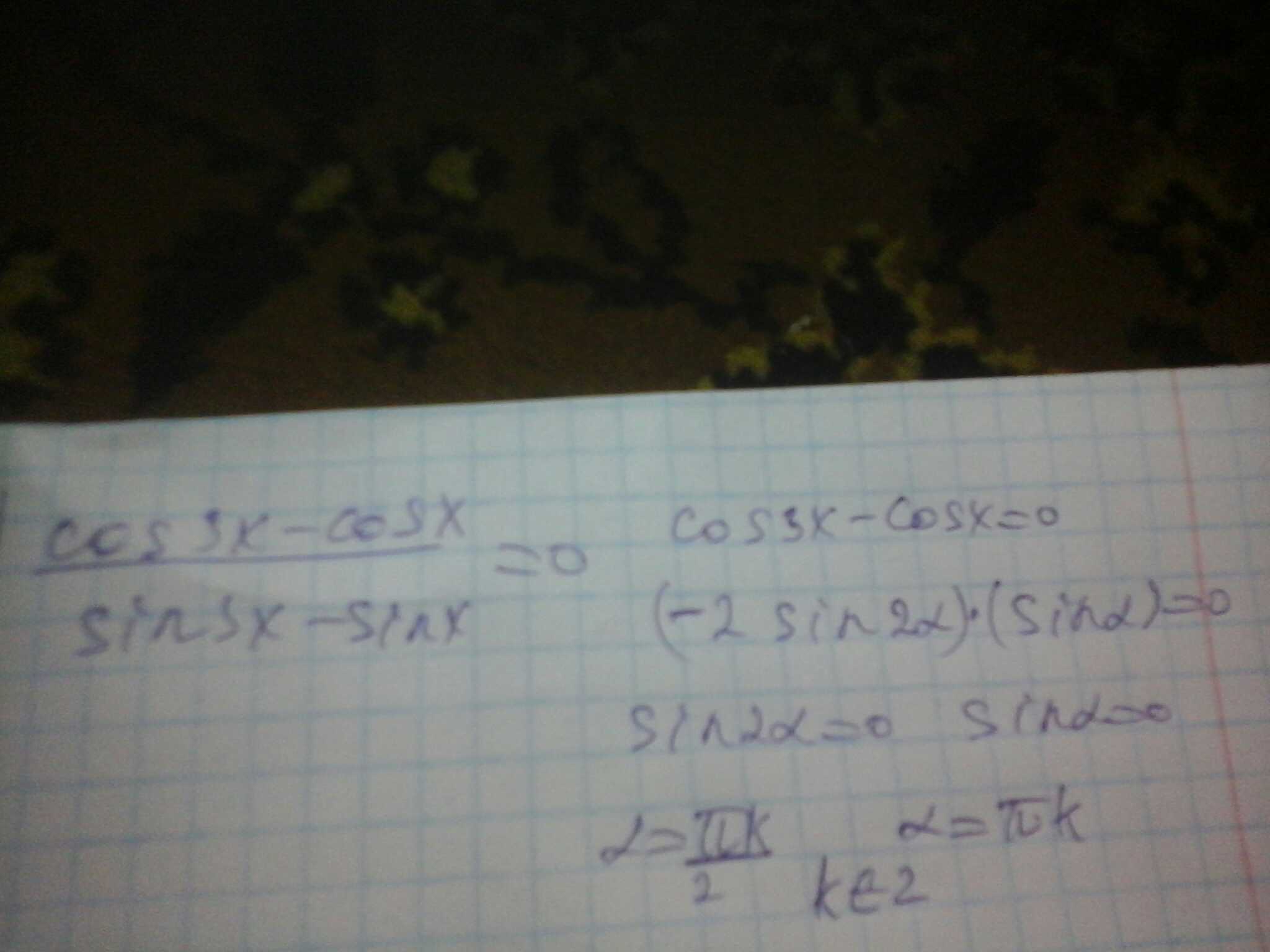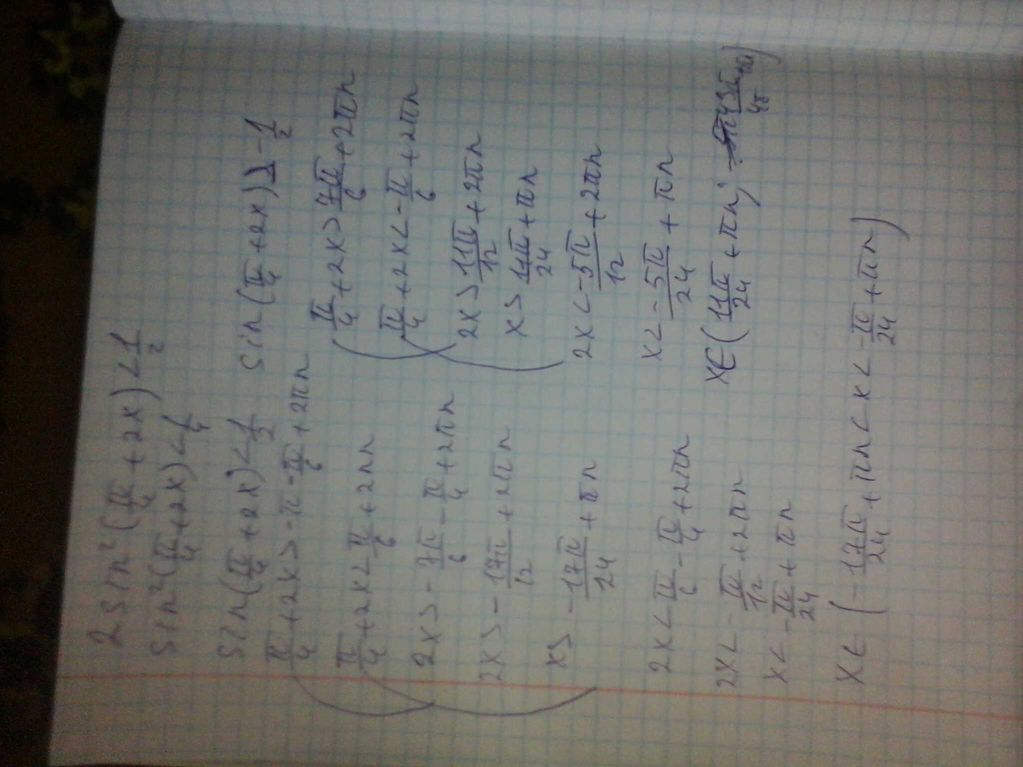 1.Решить неравенство : cos3x - cosx /sin3x - sinx = 0 . 2. 2sin^2(pi/4+2x) < 1/2. Очень надо, прошу Вас.
