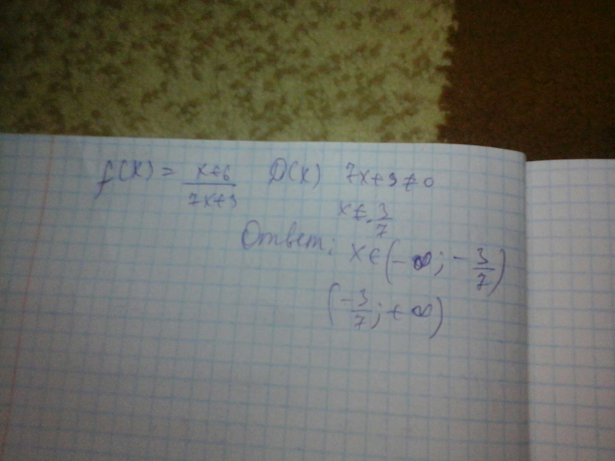 Найдите область определения функции у=х+6/(дробь)7х+3