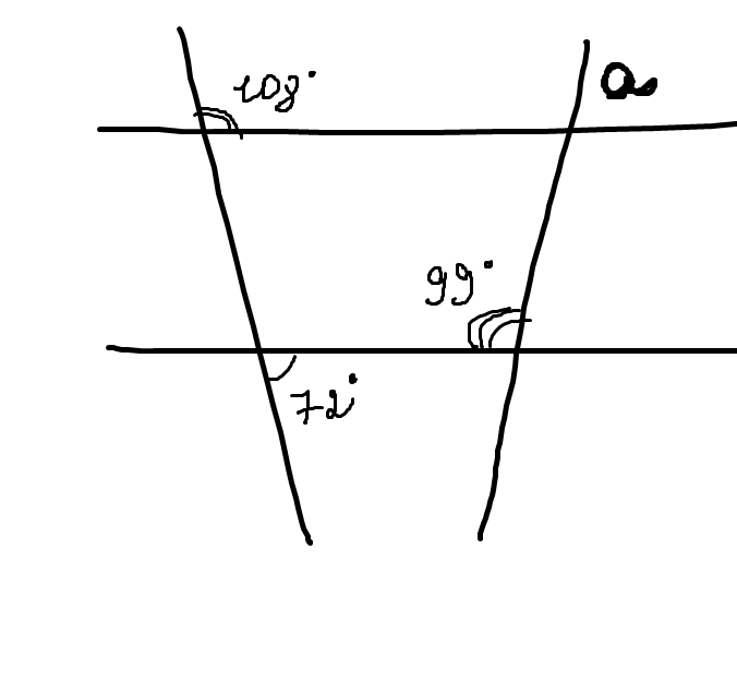 угол смежный с углом твои а равен 99 градусов(по св-ву соответственных углов),значит угол а равен 180-99=81 градус...не знаю зачем вторая секущая...