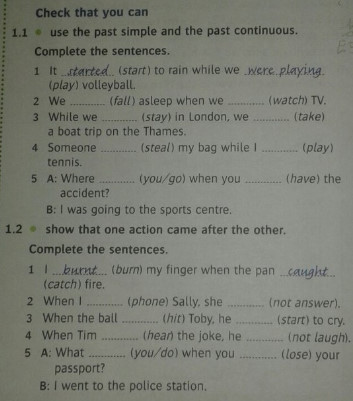 2. Fell, were watching 3.were staying, took (что за первое слово?..) 4.stole, was playing 5. Where were you going, when you had..