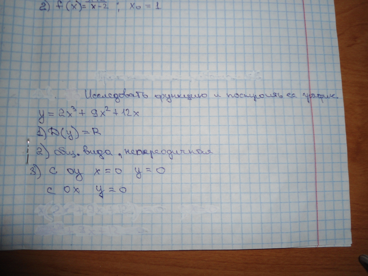 у = 0 => 2x^3 + 9x^2 + 12x = 0