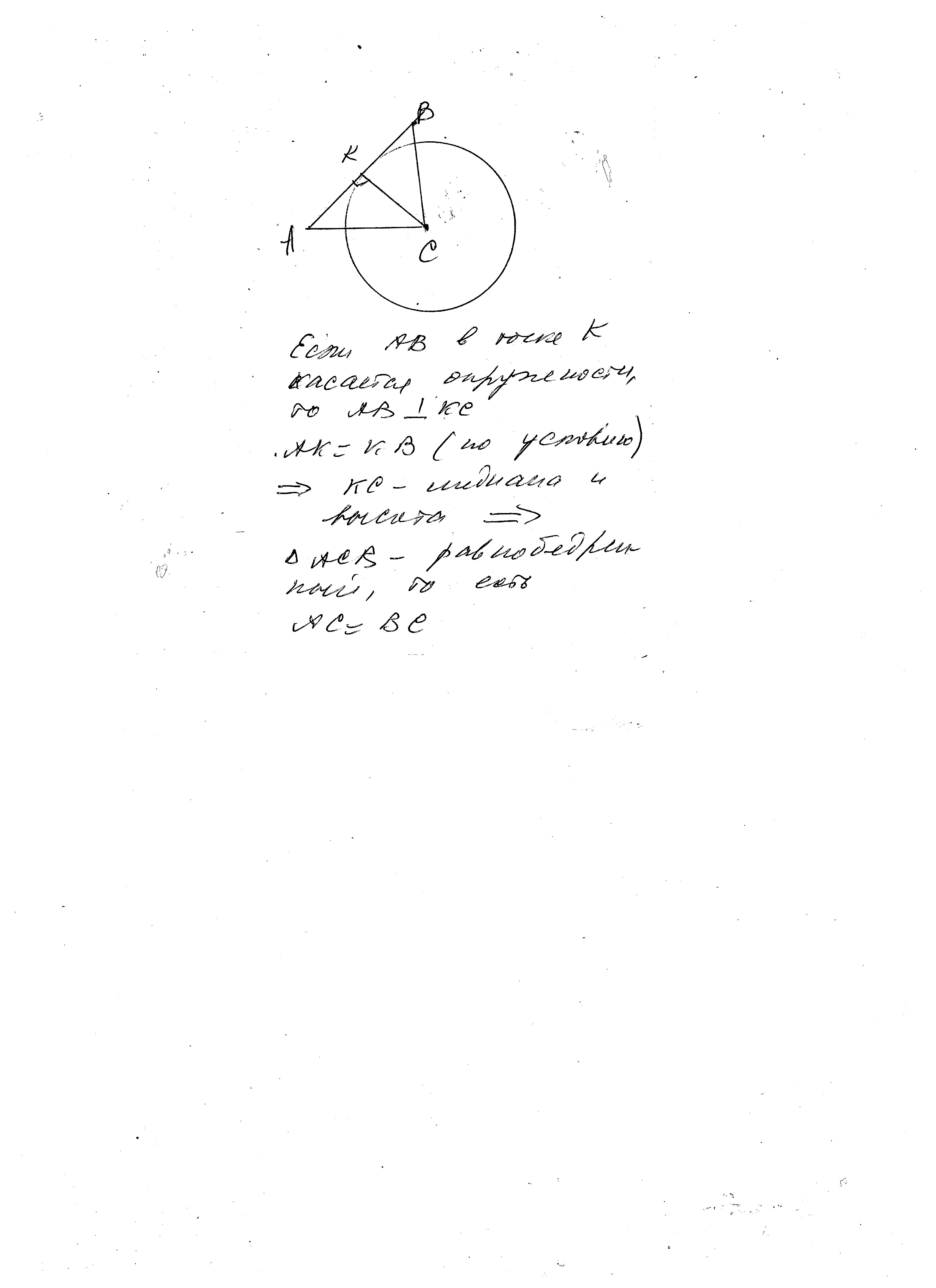 окружность с центром в вершине С треугольника АВС касается стороны АВ в ее середине. Покажите, что АС=ВС.