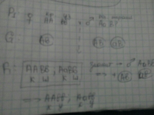У львиного зева красные цветки и широкие листья-доминантные признаки.Скрещены красноцветковые узколистные и розовоцветковые широколистные. Из гибридных семян выросло одна четвертая растений с красными цветками и широкими листьями и одна четвертая розовых с узколистными. Каковы генотипы скрещенных растений?