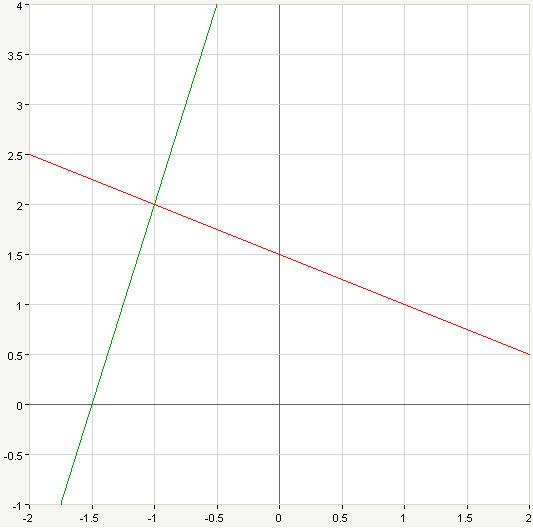 По графику видно, что прямые пересекаются в точке (-1; 2).