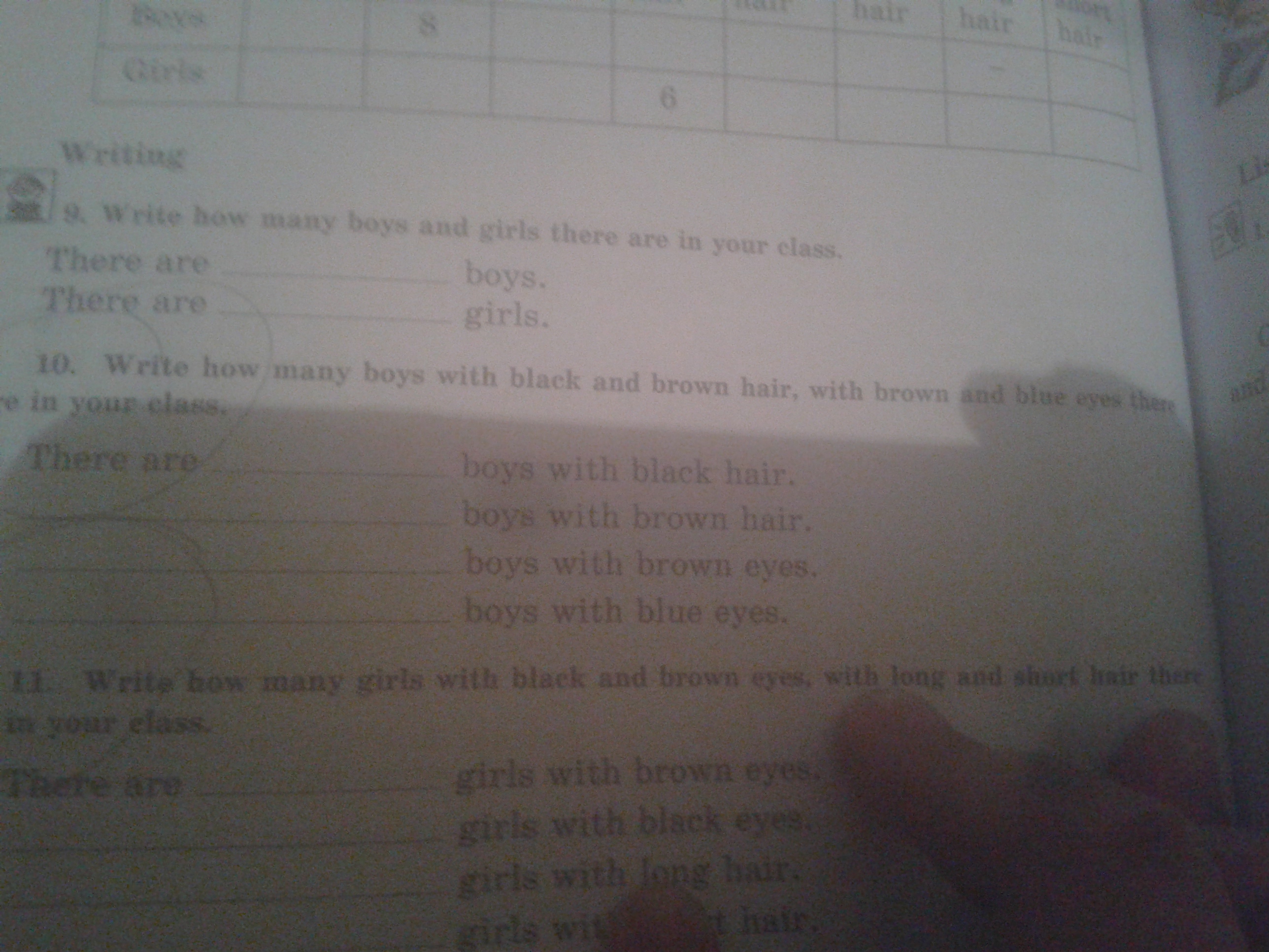 какие проблемы? Считаешь мальчиков с черными и коричневыми волосами и составляешь предложения