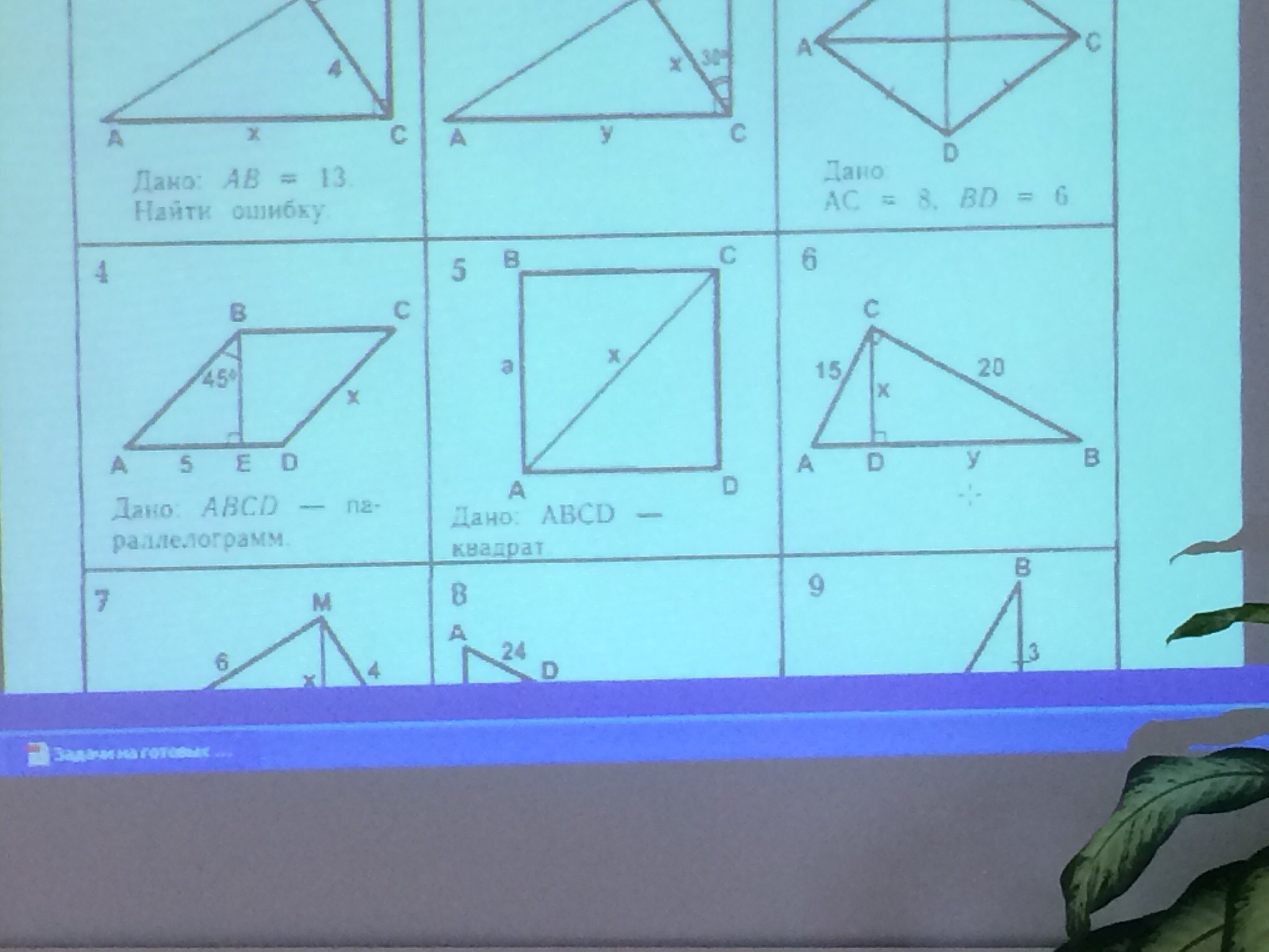 Все задачи решаются по теореме Пифагора: квадрат гипотенузы равен сумме квадратов катетов;