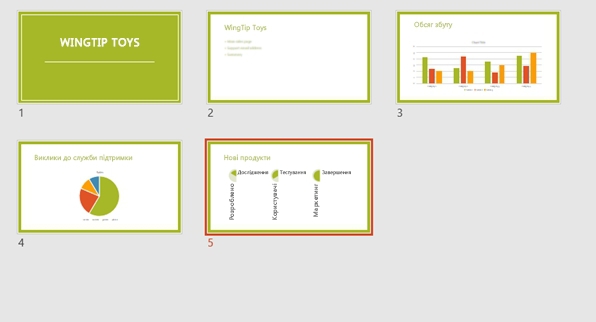 2. Подання перегляду слайдів зручно використовувати, якщо потрібно впорядкувати слайди – достатньо перетягнути їх на нове місце.