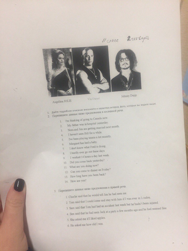 как я понила,просто поменяй как бы задание 3 надо написать как 2,а 2 как 3 ,вставить имена этих знаменитостей.В 3 задании уберии имена и said...а во 2 добавь имена,типа Джонни деп сказал...