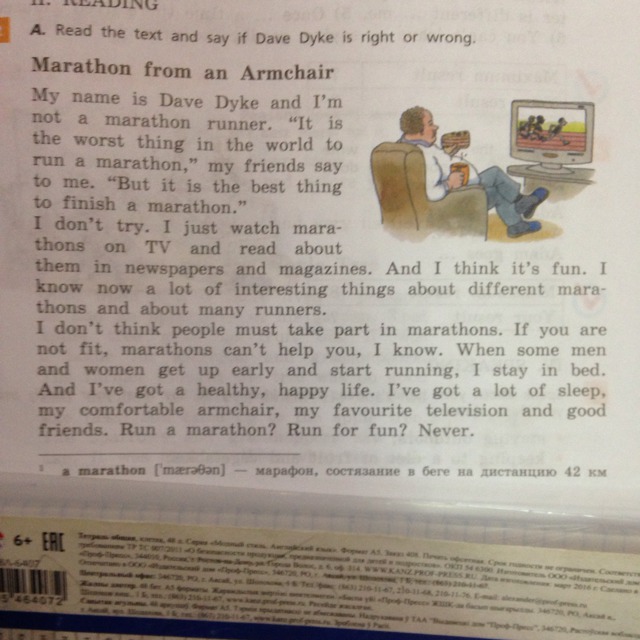 А я и не пытаюсь. Я просто смотрю марафоны по телевизору и читаю о них в журналах и газетах. И я думаю, что это весело. Теперь я знаю много интересных вещей о марафонцах и разных бегунах.