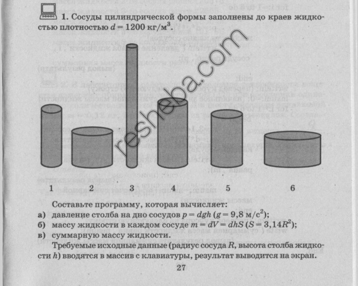 writeln('Введите радиусы сосудов и высоты столбов жидкости (м):');