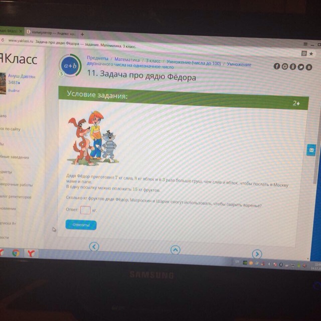7+8=15 (кг)-слив и яблок вместе