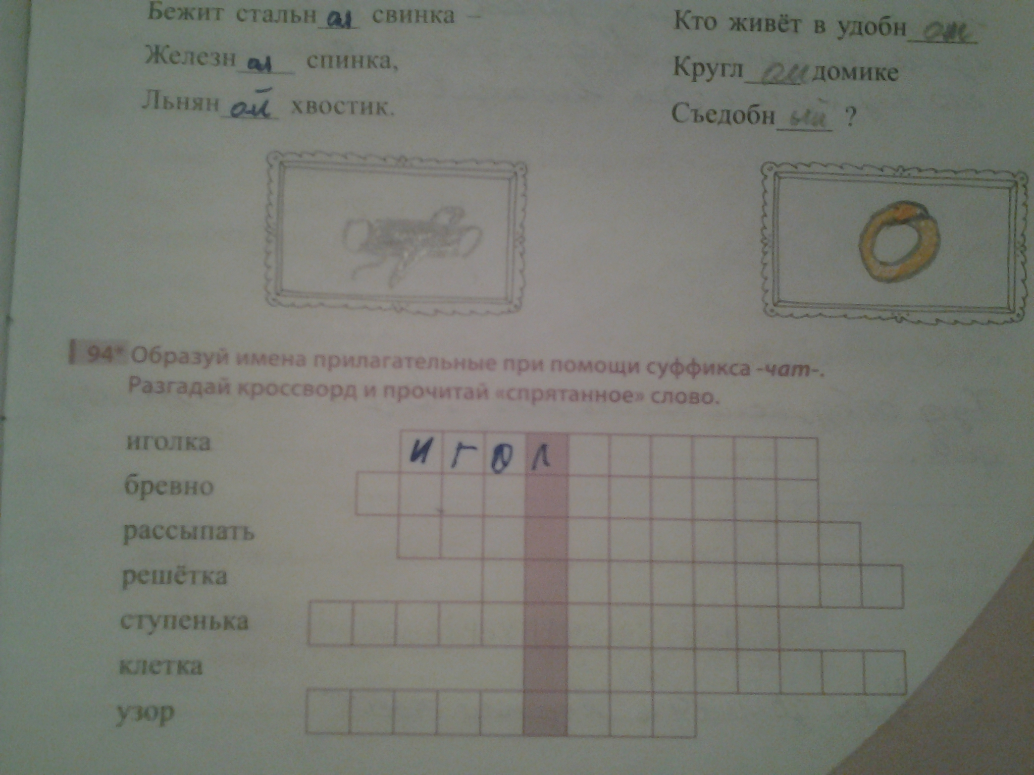 игольчатый, бревенчатый,рассыпчатый,ступенчатый, клетчатый, узорчатый