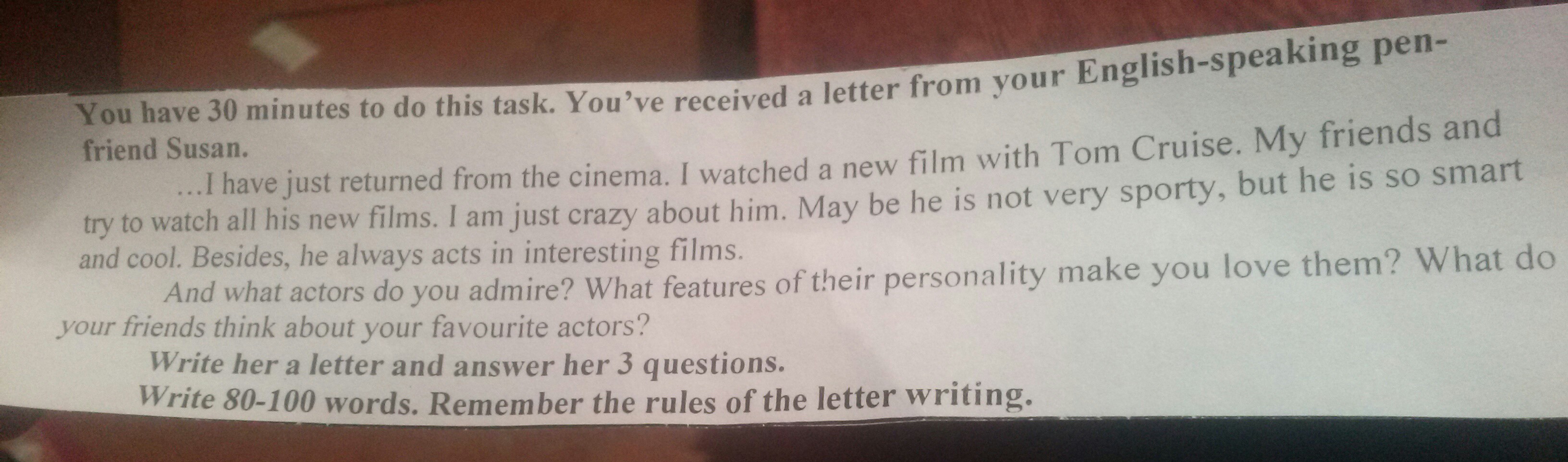 In your last letter you asked me about the actors which I like most. Well, I like different films but my favourite one is "Iron Man" with Robert Downey Jr. I like this film exeptionally for his character - Tony Stark. Robert admires me firstly by his talant and secondly by his handsome appearance. All my friends love him too.