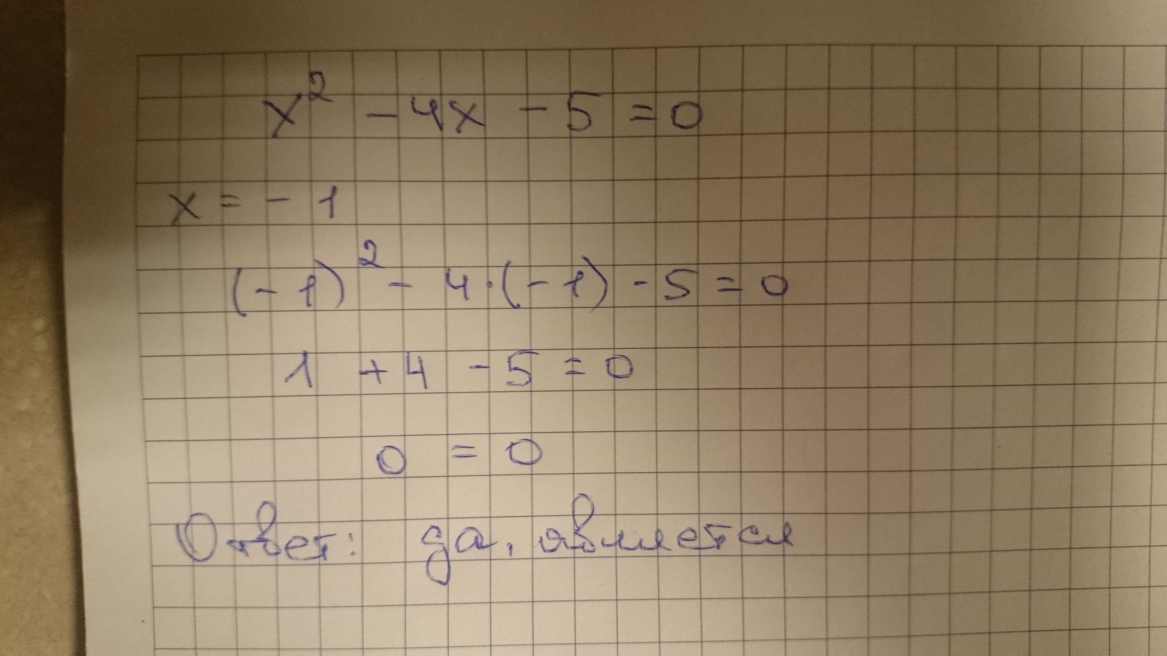 Да, является. Просто подставим в уравнение это значение х и посчитаем.