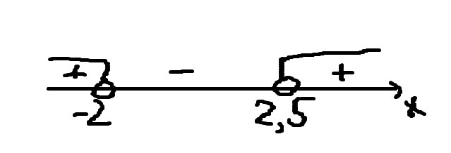 х∈(-∞;-2)∪(2,5;+∞)
