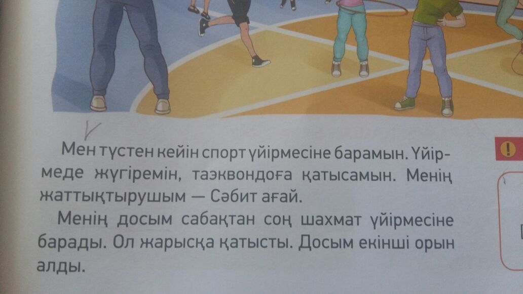 После обеда я пойду на спортивный кружок. На кружке бегаю, участвую в таэквандо. Мой тренер- дядя Сабит.