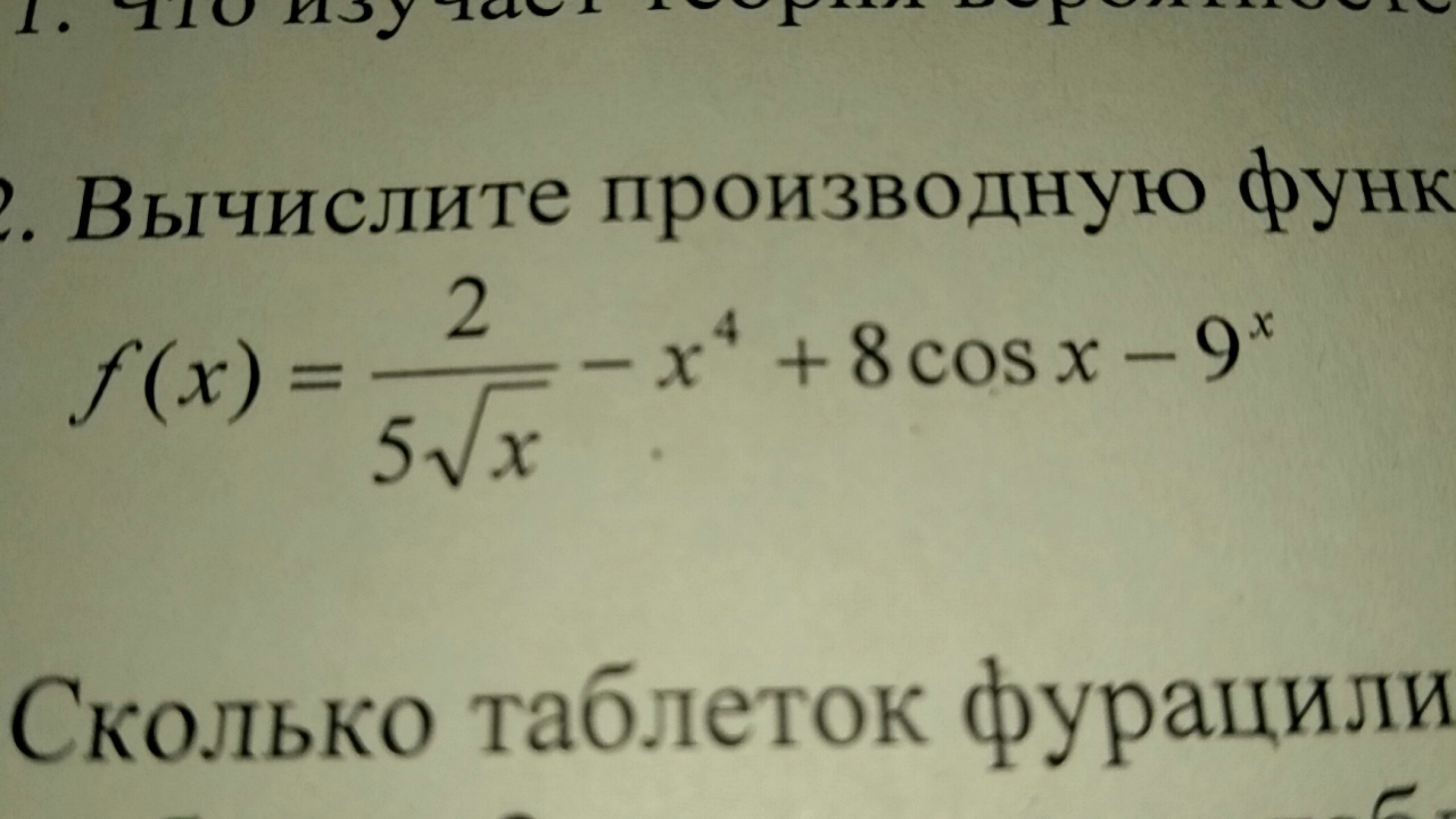 f'(x)=-1/2*2/5*x^(-3/2)-4x^3-8sinx-9^x*ln9=-1/(5x*√x)-4x^3-8sinx-9^xln9