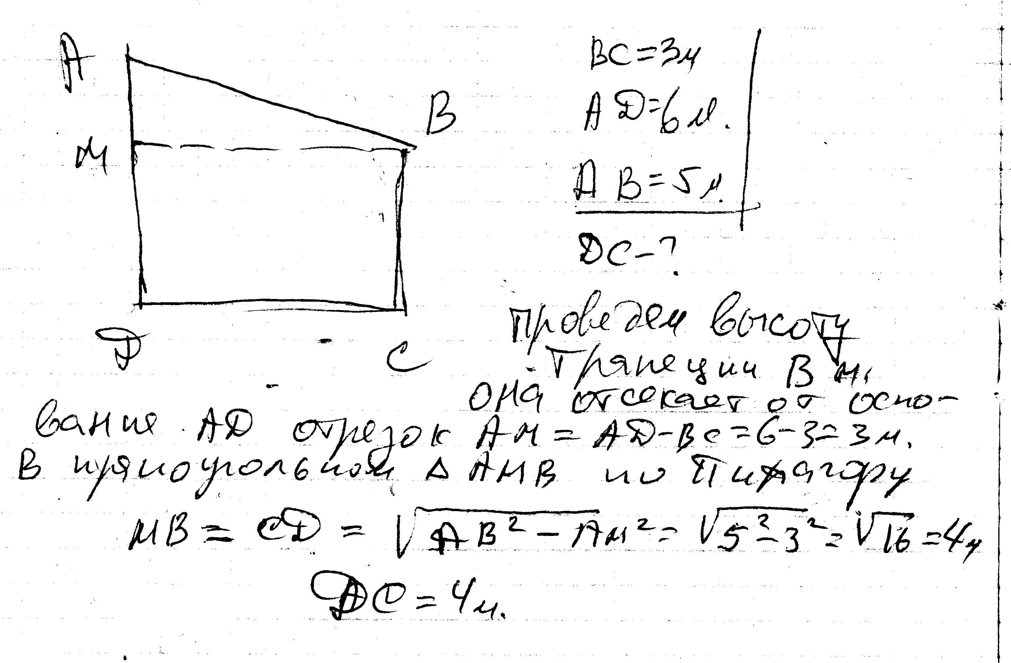 Перекладина длиной 5 м своими концами лежит на двух вертикальных столбах высотой 3 м и 6 м.Каково расстояние между основаниями столбов?