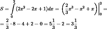 используя определенный интеграл , найти площадь фигуры ограниченной линиями y=2x^-2x+1, x=0, x=2