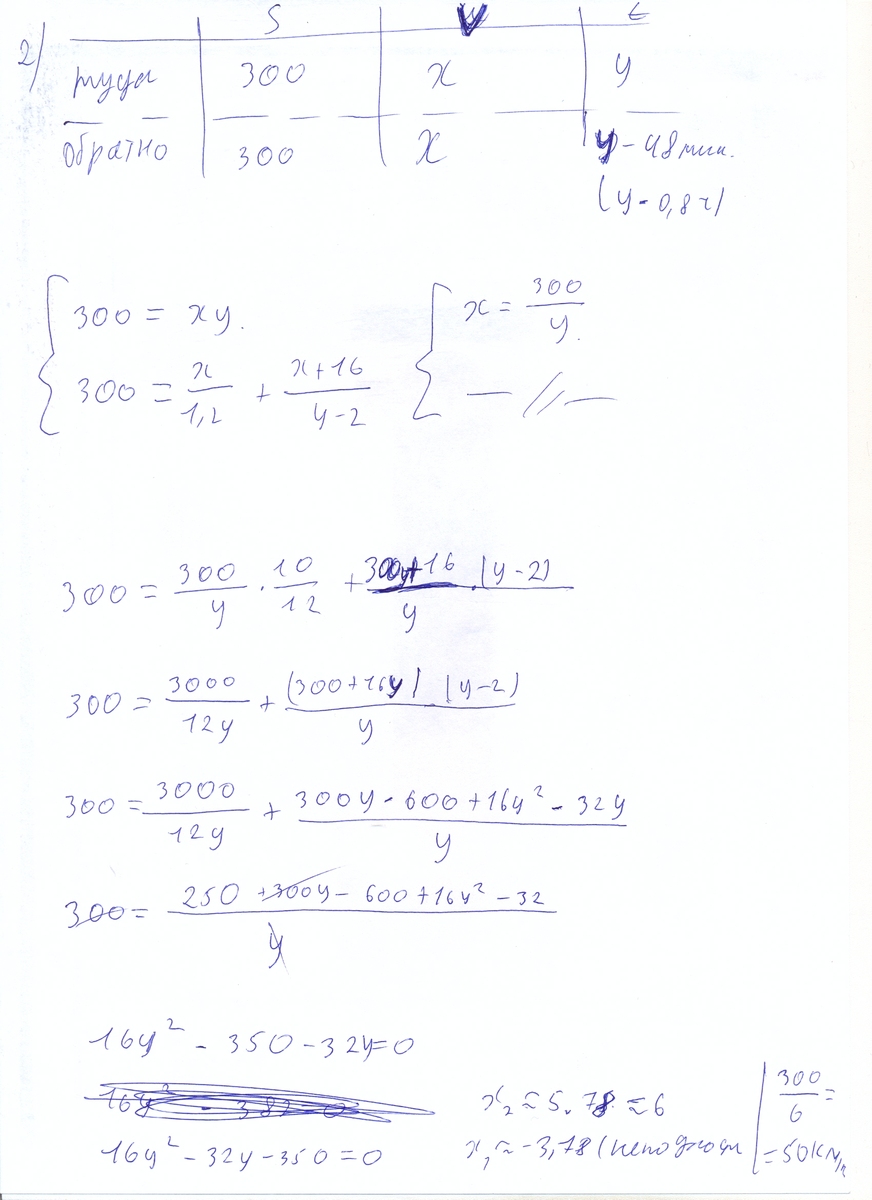 2) автомобиль, пройдя путь от А до В, равный 300 км, повернул назад и через 1 час 12 минут после выхода из В увеличил скорость на 16 км/ч. В результате на обратный путь он затратил на 48 минут меньше, чем Неа путь от А до В. Найдите первоначальную скорость автомобиля.