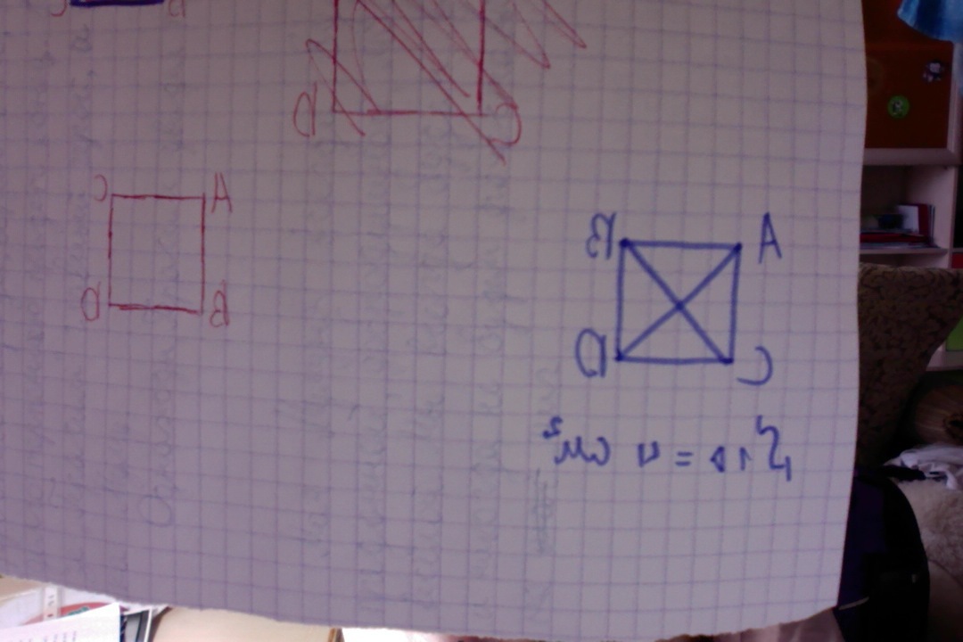 постройте квадрат ABCD со стороной 4 сантиметра и Проведите в нём отрезки AC и BC Чему равна площадь каждого из четырех получившихся треугольников