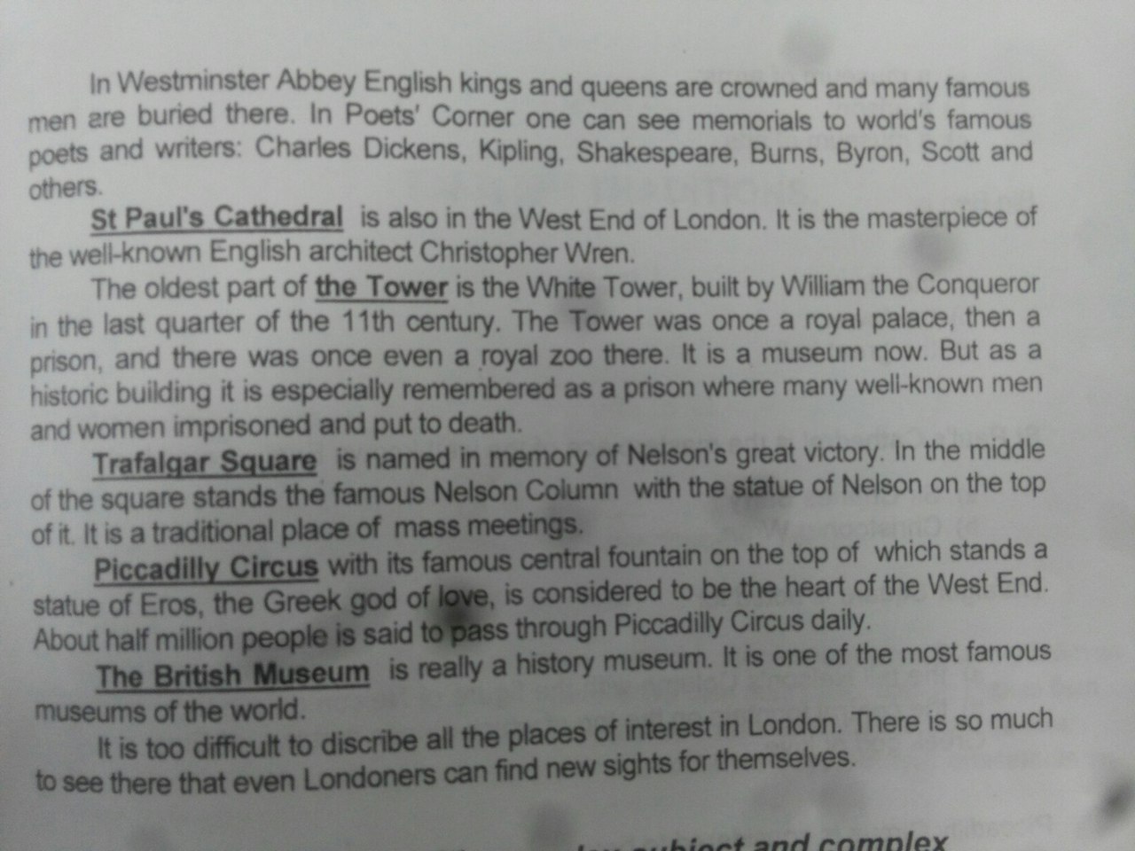 Надо рассказать о достопримечательностях (минимум 9 предложений), перевод ненужен. НУ вот надо выбрать 9 предложений отсюда, и составить типа мини рассказала. Предложения должны быть по смыслу. Желательно про разные достопримечтальено. Например: 2 про одно, 3 про другое и тд. Ну и связки всякие добавить что нормально было.