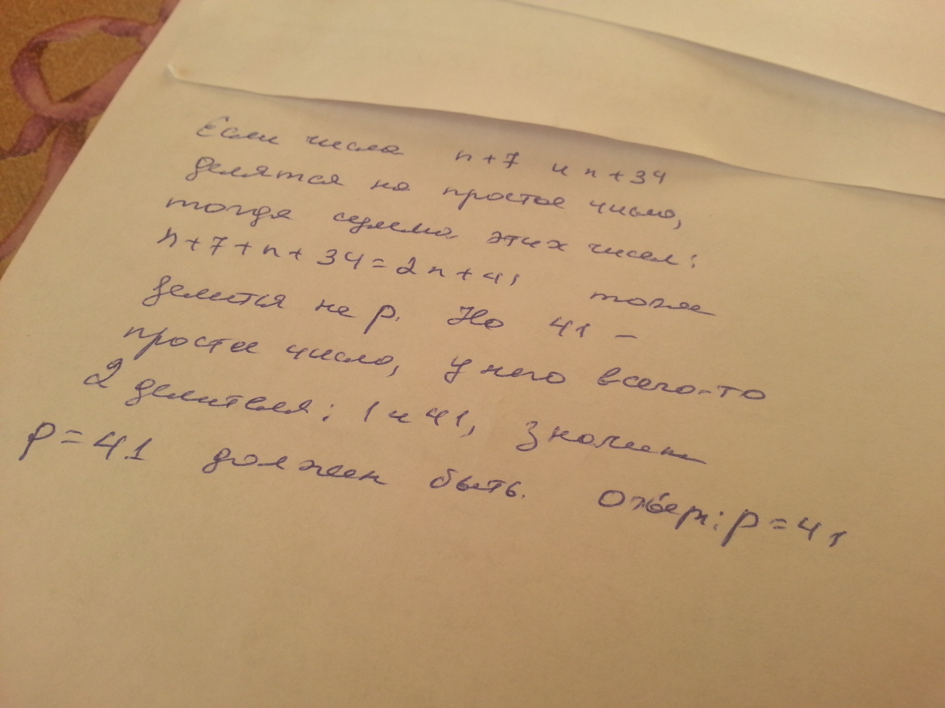 А если допустим n=2; тогда 2+7=9 ; 2+34=36; они оба делятся на просто число p