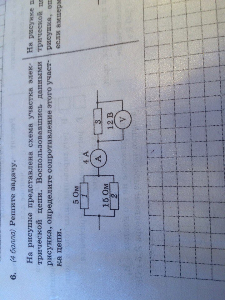 Он проходит через резистор 3 и падение напряжения на нем 12, значит сопротивление