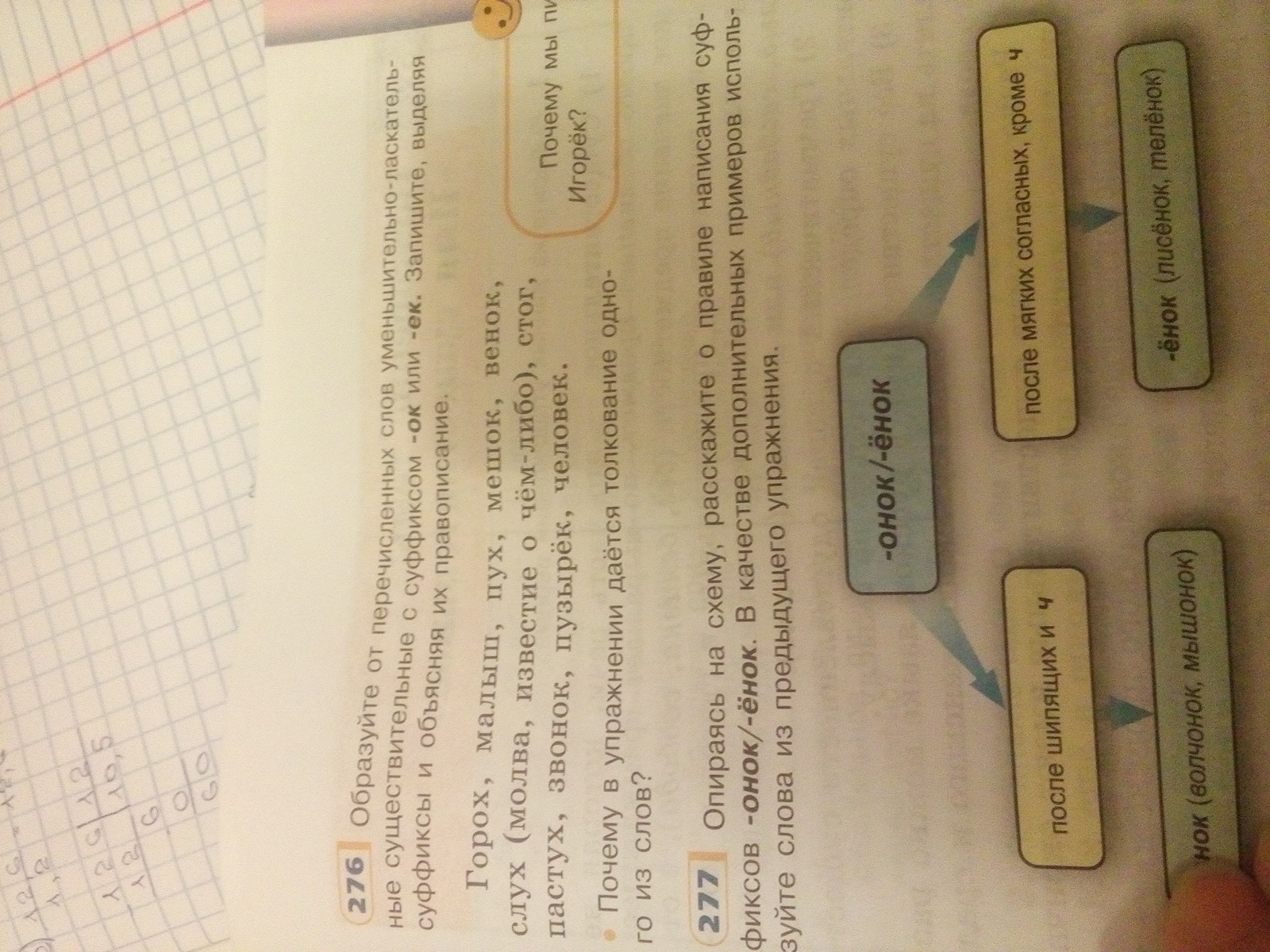 Горошек, малышок, пушок, мешочек, веночек, слушок, стожок, пастушок, звоночек, пузырёчек, человечек.