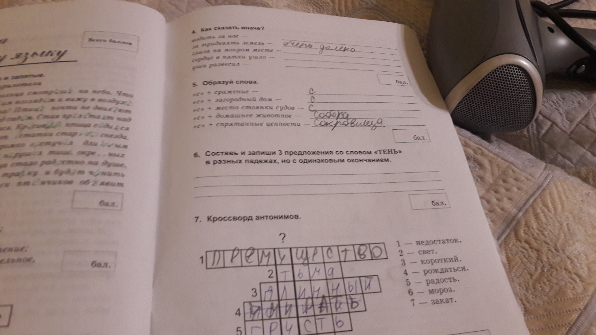 3)тень стояла (над чем?)над игрушкой т.п.