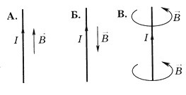 На каком из рисунков правильно показано направление линий ин-дукции магнитного поля, созданного прямым проводником с током?